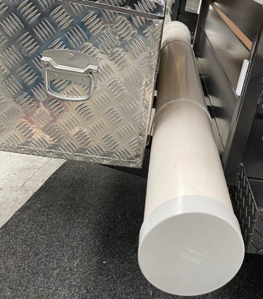 Tailgate Kitchen with Cutlery Draw, Sink with hand pump, area for a 3 Burner Stove and heaps of Bench space and Under Bench Storage. 60 Litre Water Tank with lockable filler cap, Ark Pak with Inverter and charger.