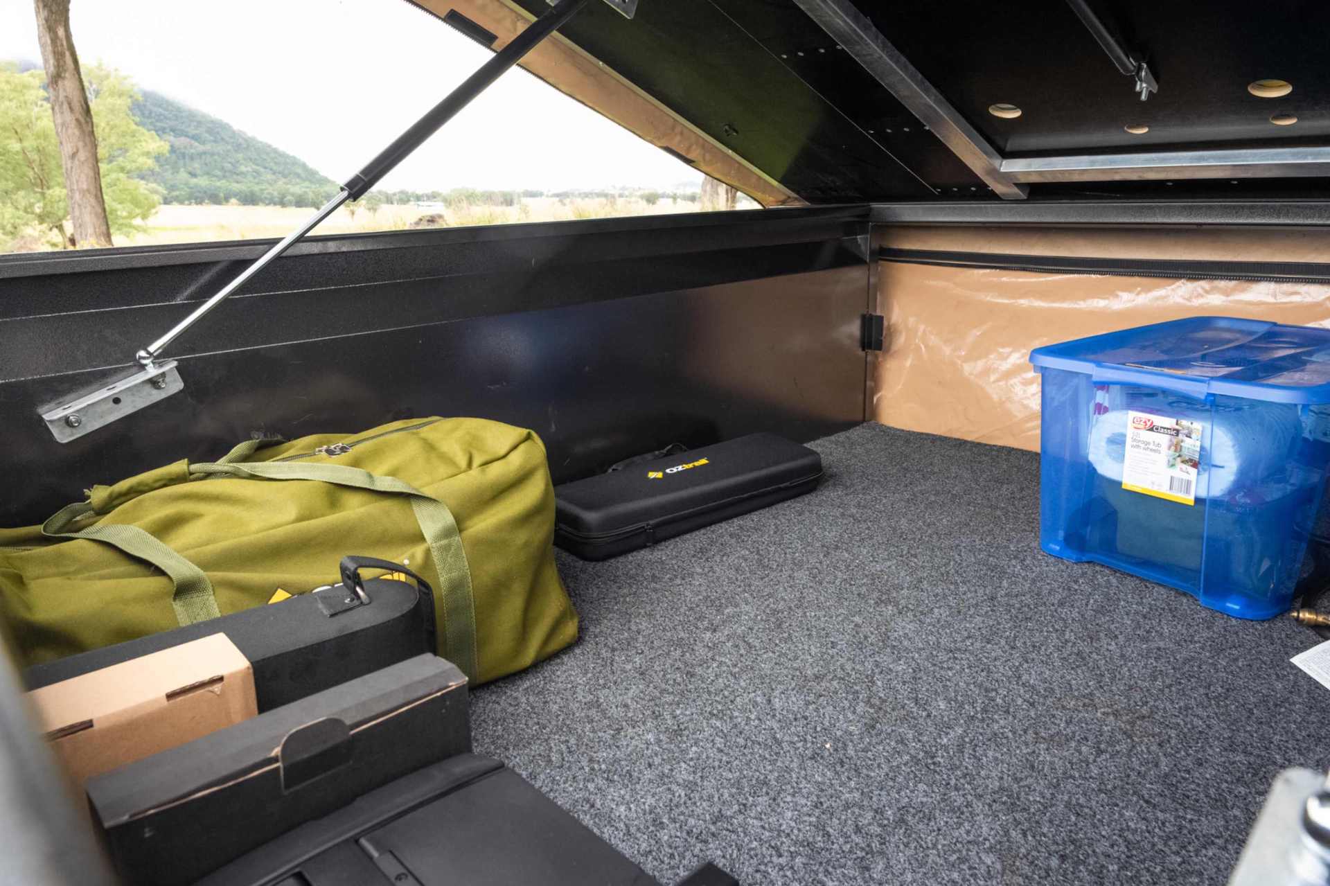 - Inside the trailer you have a huge 1.5m x1.2m area free for all your camping gear. Apart from the kitchen, your trailer is completely empty and ready to load.