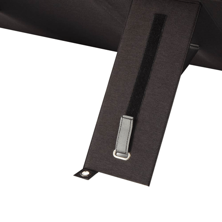 - Inbuilt adjustable stand system for maximised output with peg down point