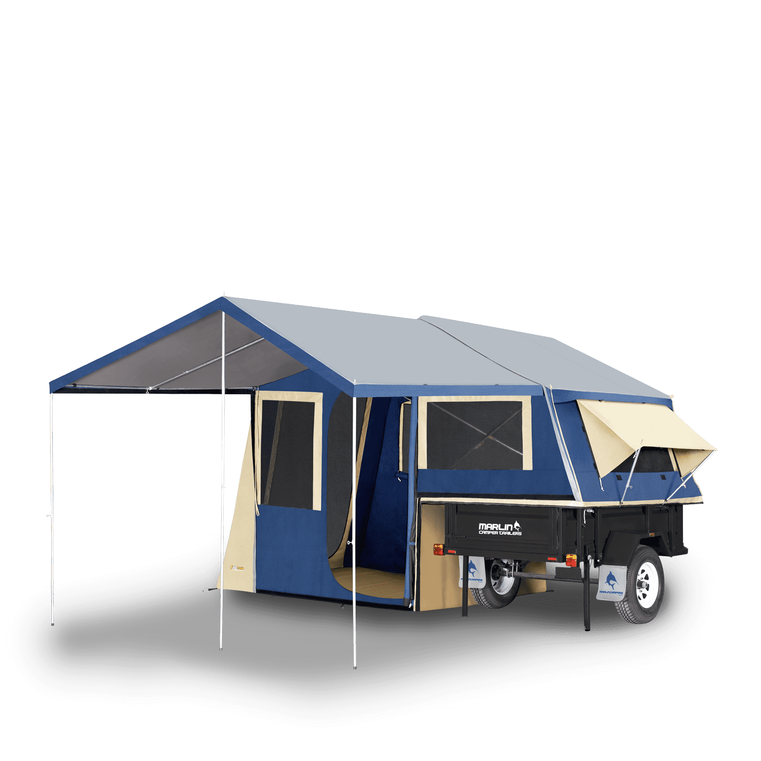 Marlin’s High-Side Tent, is designed for lifted 7×4 trailers with a 120cm drop, and sleeps 2-4 people. This is the Tent we use on our Outback Camper. The innovative design comes with all the comfortable features Marlin is known for and combines quick and easy one-person set up with top of the range features for all round comfort and convenience. Like all Marlins, it comes with all the features that have made Marlin Famous, like our 2-minute setup with our easy one-touch pole adjuster, so you set up quickly and easily which means less time setting up and more time for you to sit back and enjoy the surroundings, and the insulated roof that keeps you cooler in summer and warmer in winter. The comfy queen size bed gets you sleeping up off the floor, ensuring a good nights sleep. If you’ve always loved camping, but setting up a tent has lost it’s appeal, then the Marlin High-Side Tent is for you!